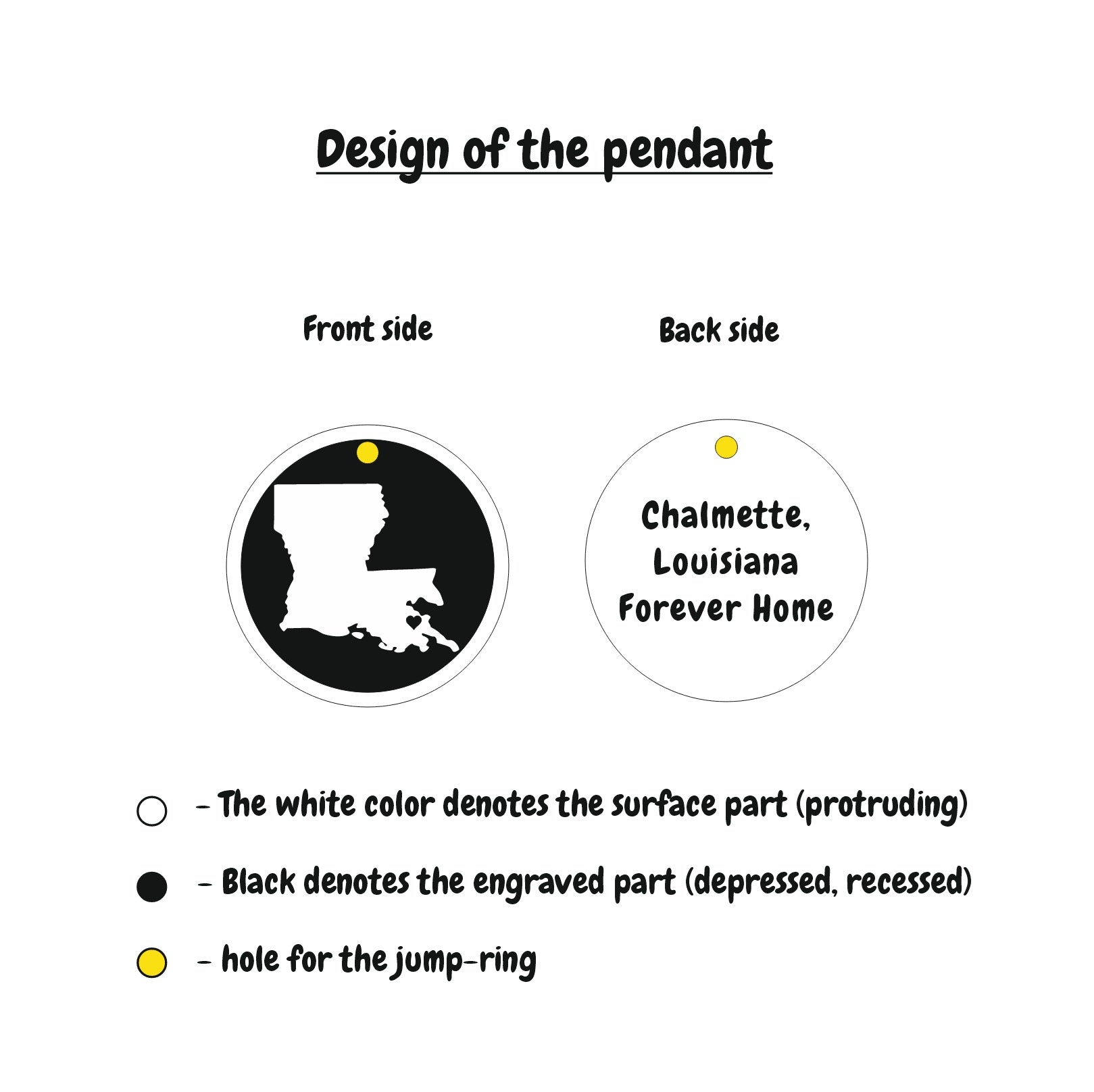 – Deep engraved necklaces with the Louisiana and Nevada state silhouettes