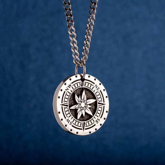 Edelweiss Compass Pendant - Gift for Adventure Lovers, Boulderer, Climber! Mountain Pendant for backpackersRegular price €90,00 EURRegular priceUnit price / per€120,00 EURSale price €90,00 EURSale