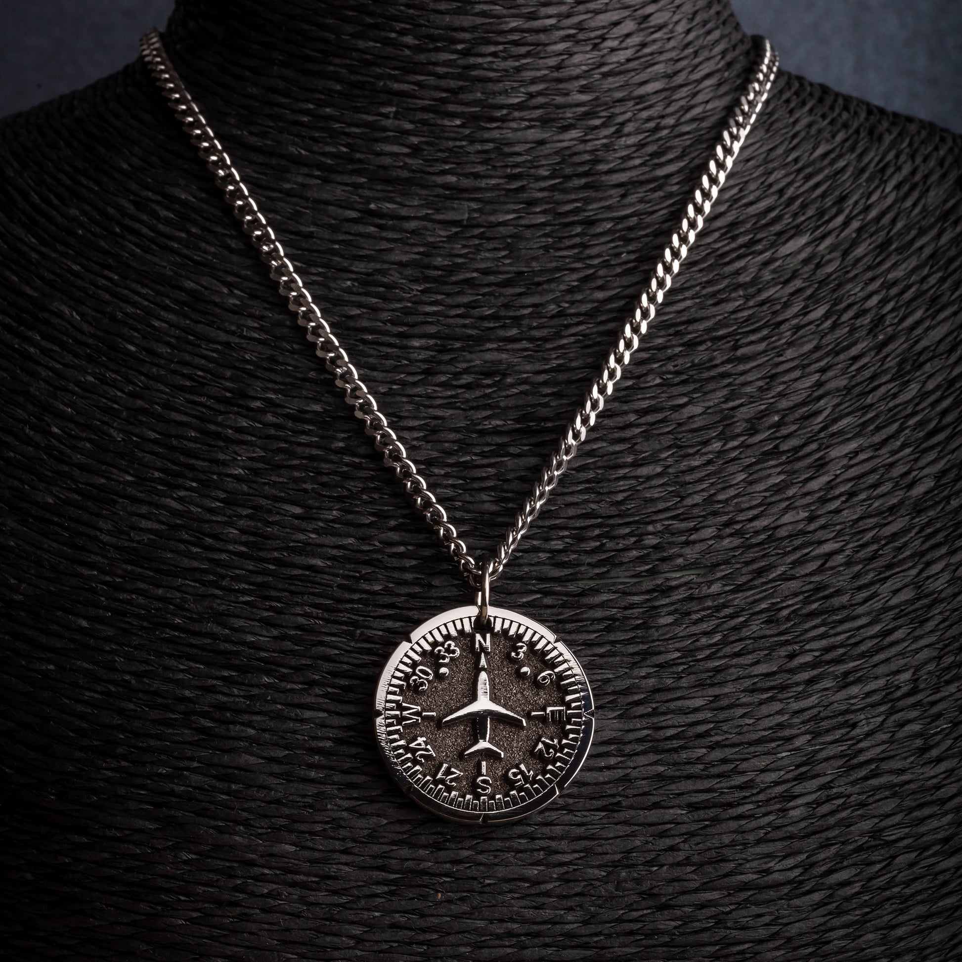 Crafted with high-quality jewelry stainless steel, this pendant is not only stylish, but also durable - suitable for pilots, aviation enthusiasts, commuters, adventures, backpackers, and anyone who loves great travel. The personalized round pendant is a men's necklace that makes a perfect gift for dad, husband, or guy, whether for Father's Day, his birthday, or any other special occasion. A pendant with navigational instrument and plane is also suitable for girls who can't imagine their life without flights and travel.
