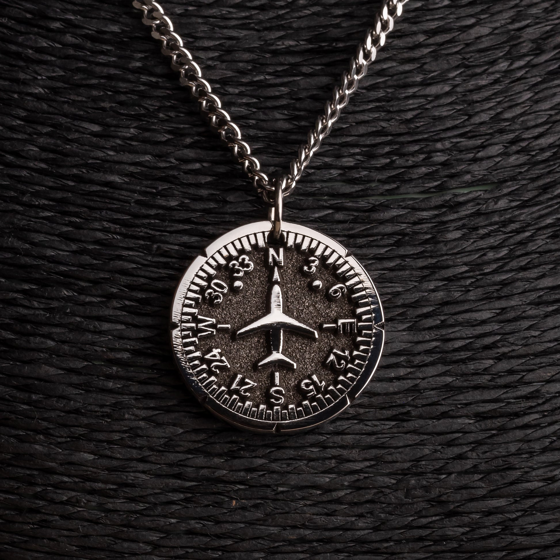 Airplane Heading Indicator Necklace. Introducing our personalized round unisex pendant - a unique and thoughtful gift for Cabin crew, Flight attendants, adventure and travel lovers. The pendant features a captivating image of a Heading Indicator and aircraft. The Heading Indicator represents direction and guidance, reminding the wearer to follow their path and stay true to themselves.