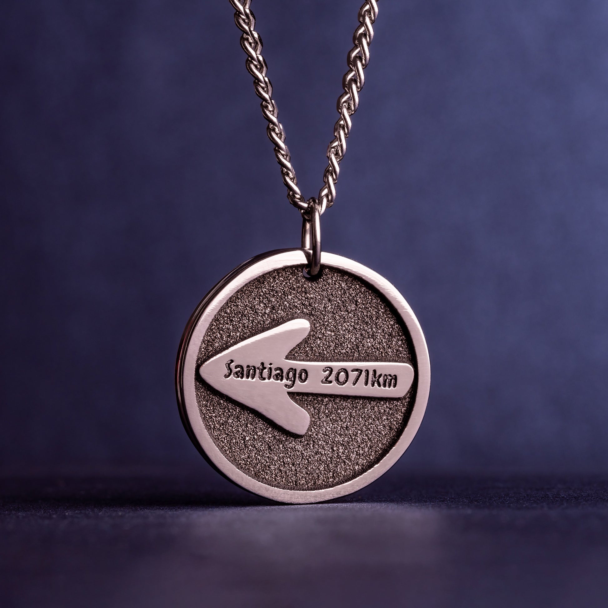 Camino Arrow with Kilometers Traveled Necklace. Pilgrim Jewelry. Camino de Santiago Pendant, Jakobsweg