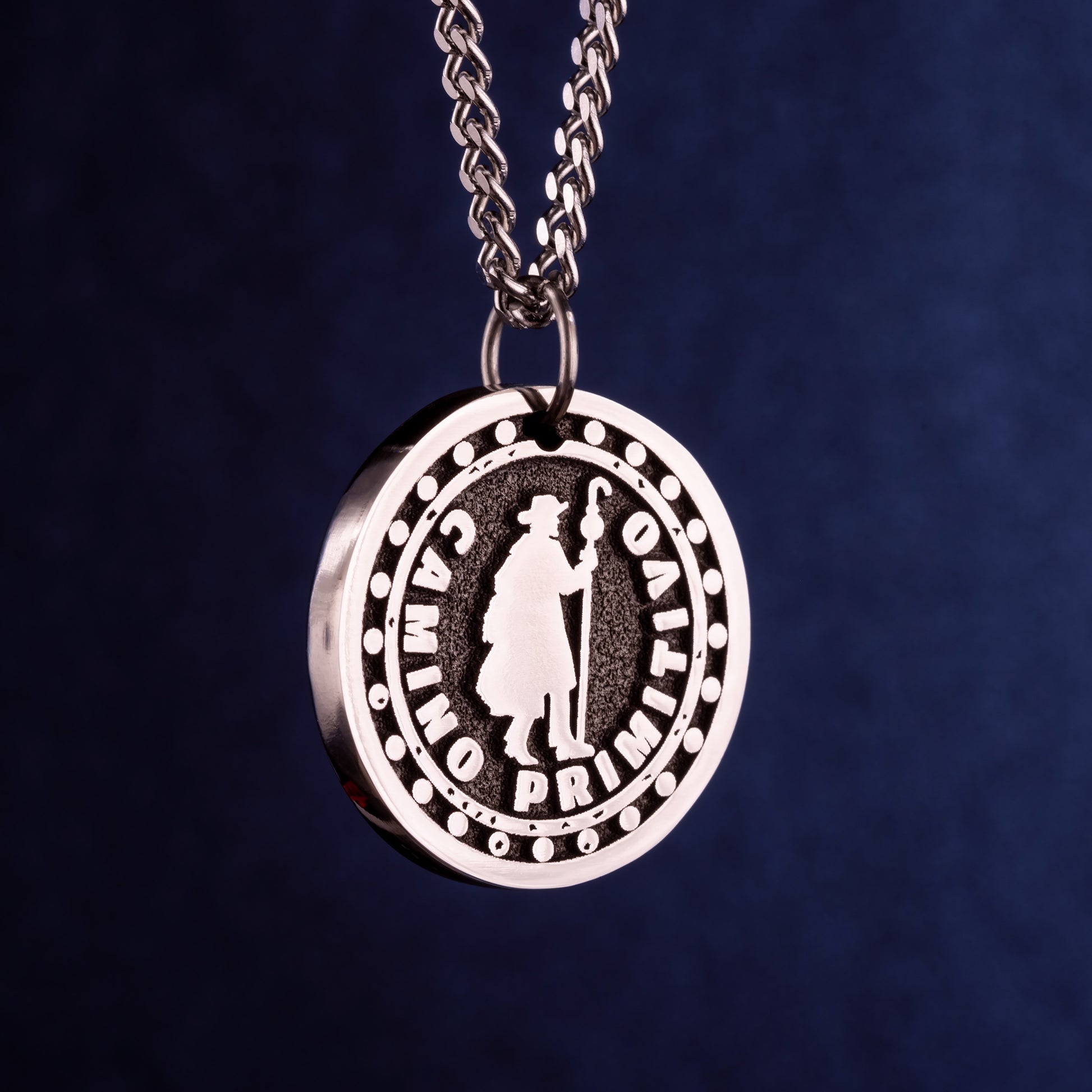 Camino Primitivo - Camino de Santiago pendant featuring a pilgrim, a beautiful and meaningful piece of jewelry that celebrates the rich history and spiritual significance of the famous pilgrimage route.