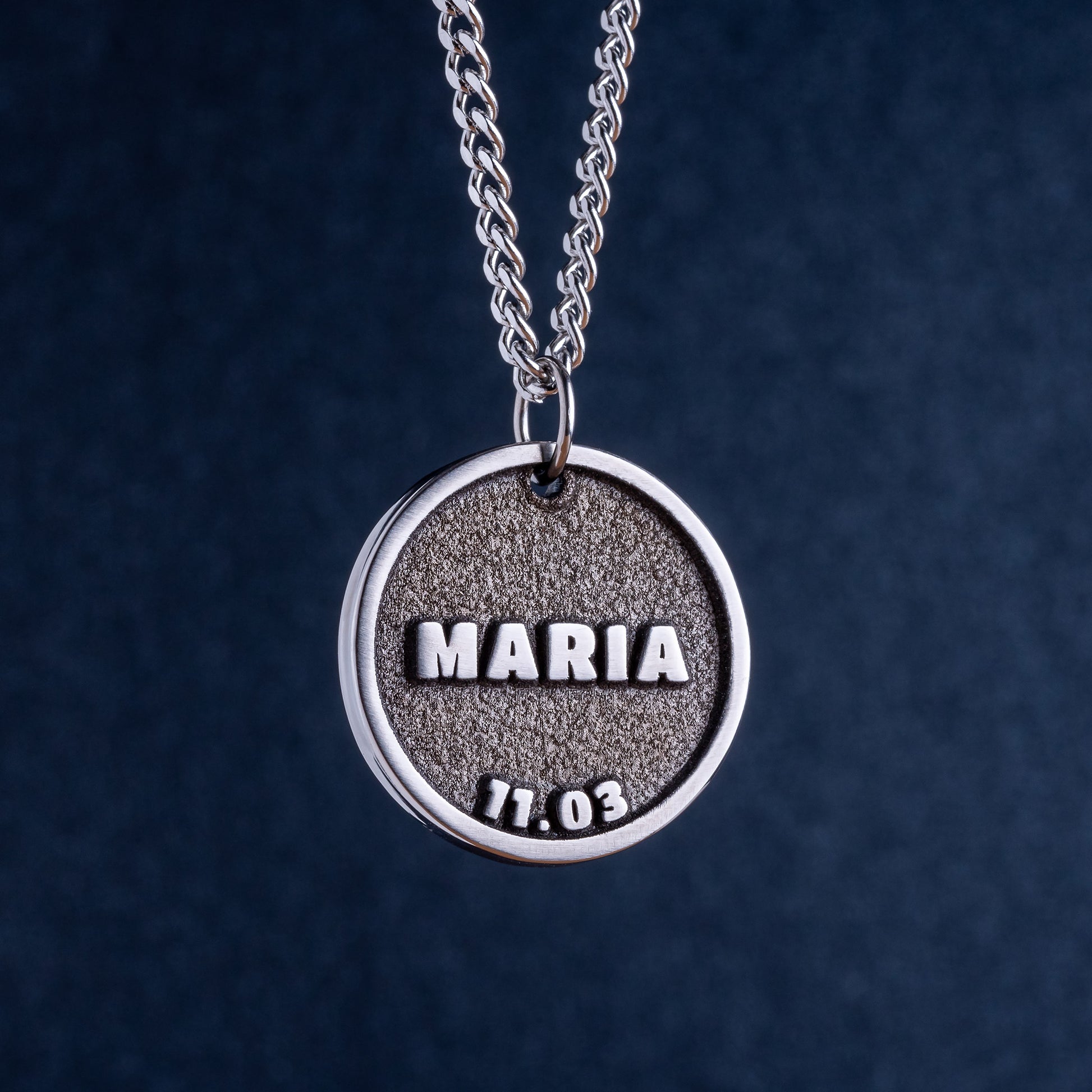 A name pendant with a date of birth or another memorable date will be a good gift for your loved one. The necklace can be personalized as you wish with your name, birth date, wedding or child's birthday.