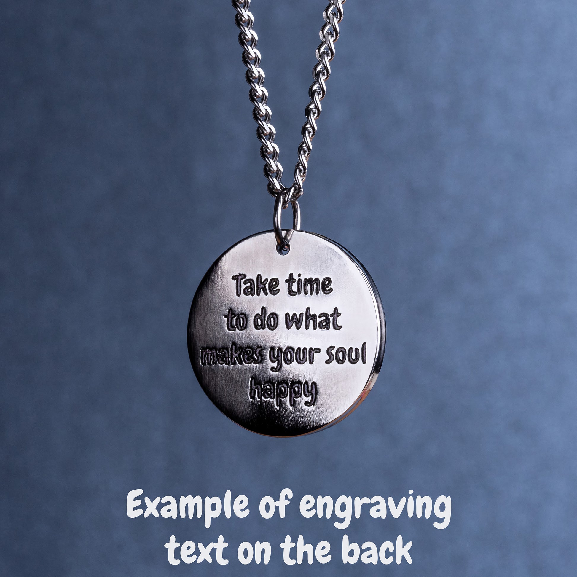 If you wish, the back of the pendant can be engraved with an inscription, a wish, or your favorite quote.