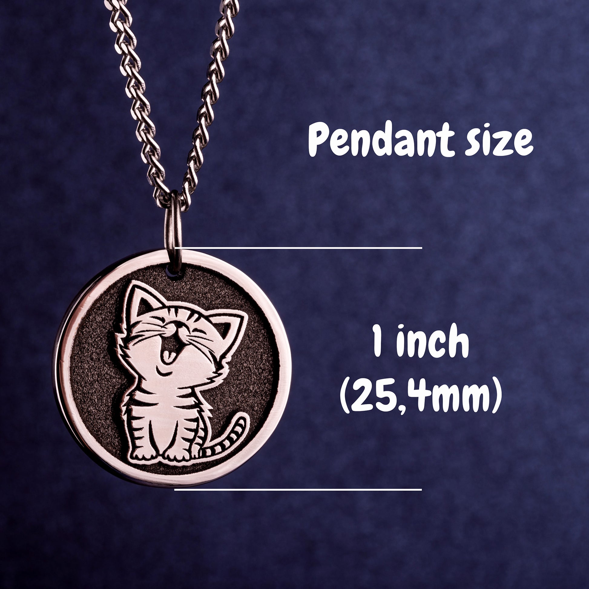 Crafted with high-quality jewelry stainless steel, this pendant is not only stylish but also durable. The personalized round pendant is a women's necklace that makes a perfect gift for mom, wife, or girlfriend, whether for Valentine's Day, her birthday, or any other special occasion. A pendant with Cat is also suitable for girls who can't imagine their life without her fluffy ass.