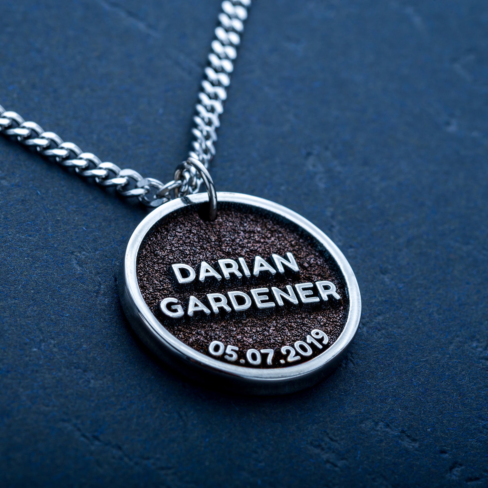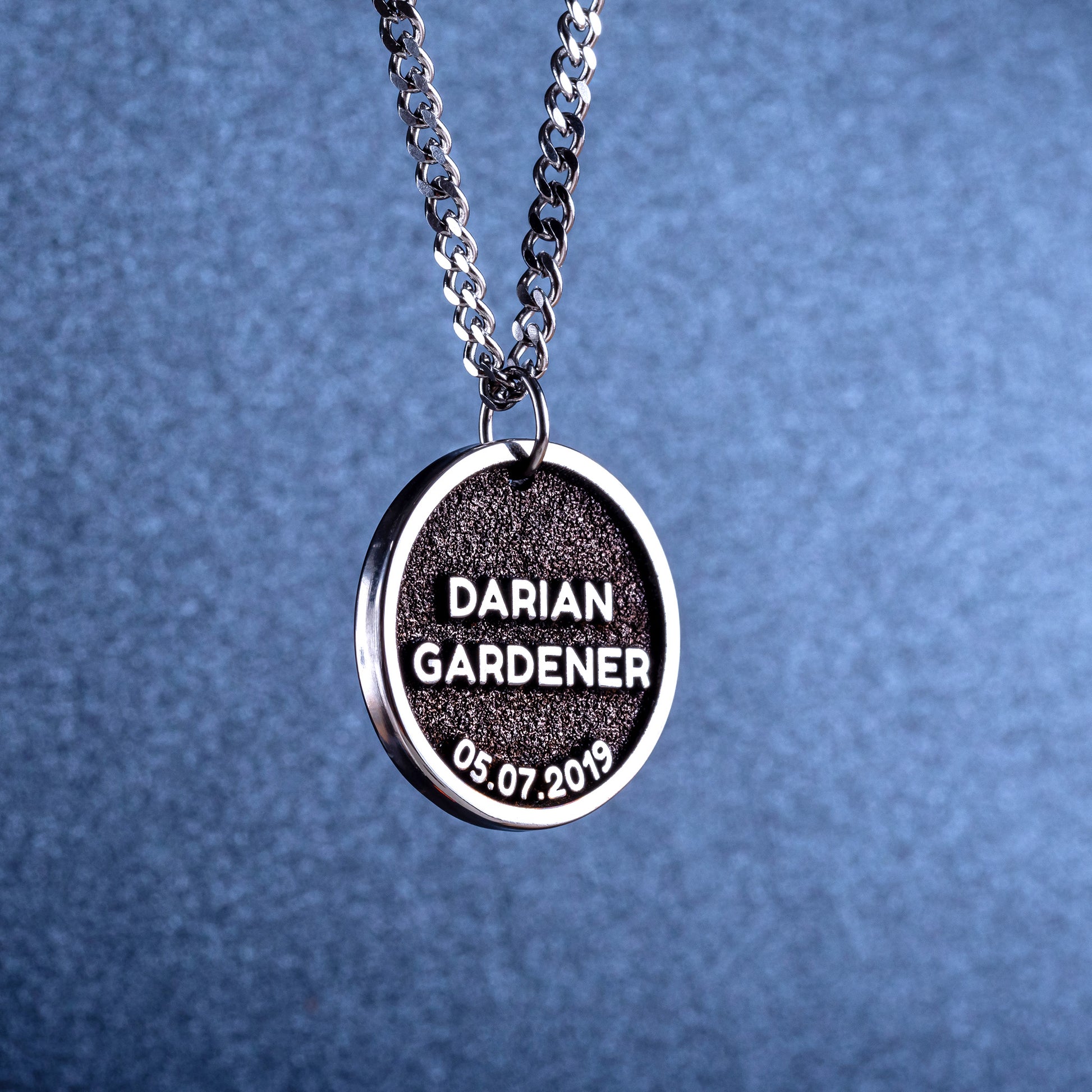 Personalized pendant with a birthday or other memorable date. A custom-made stainless-steel necklace is a great gift option for a loved one's birthday or anniversary. It can be a great gift for a new dad who just became a father - a locket with the child's name on it. Or a gift for a beloved grandfather.